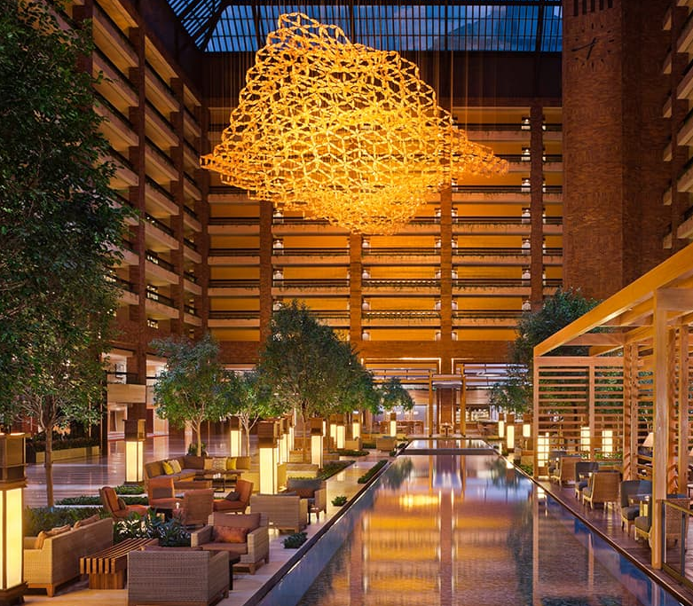 The Hilton Anatole, owned by the Crow Family, showcases an art haven housing over 1000 works. Admire a monumental kinetic sculpture in the main atrium, relics of the Berlin Wall, and a curated assortment of 20th Century Art Deco hood ornaments gracing the SĒR steakhouse.